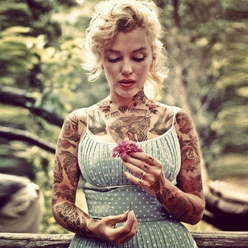 O photoshop é um dos recursos mais usados e criticados ultimamente. Só que, graças a God, temos a arte que aproveita uma coisa ruim e transforma em algo massa. Foi o que fez a artista americana Cheyenne Randall. Ela pegou fotos, em sua maioria antigas, de celebridades e "photoshopou" de tatuagens, dando uma outra imagem às pessoas. Vejam aí algumas tatuadas, entre elas, Marilyn Monroe e o Casal Real.